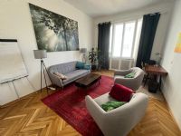 Ruhiger, geschützter Seminarraum für Familien- und Gruppentherapie, Selbsterfahrungs-WE, Aufstellungsarbeit und Gesundheitsförderung. Großzügiger Pausenraum mit Teeküche und Sanitärraum. 200m zum Augarten. 250m zur U2 Taborstraße. Garage in der Nähe.
