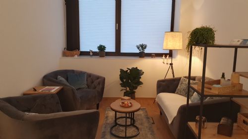 Ruhiger und geschützter Raum für Psycholog. Beratung, Coaching, Supervision, Einzel-, Paar-, Familientherapie und Aufstellungsarbeit. Großzügiger Warteraum mit Teeküche und Sanitärbereich. 250m zur U2 Taborstraße, Kurzparkzone, Garage in der Nähe.
