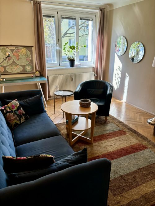 Mein Therapieraum befindet sich in einer geräumigen, multiprofessionellen Praxisgemeinschaft im 3.Liftstock des ersten Wiener Hochhauses; Direkt an der U-Bahnstation Herrengasse (U3). Das große Fenster zeigt in einen hellen, weitläufigen Innenhof und bietet viel Tageslicht in ruhiger Atmosphäre.