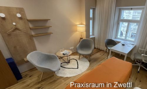 Praxisraum in ZwettlGemütlicher und geschützter Raum für Psycholog. Beratung, Coaching, Supervision, Einzel/Paartherapie und Körperarbeit. Großzügiger Warteraum mit Teeküche und Sanitärbereich. Am Hauptplatz 16 (1,5h freies Parken), Garage in der Nähe.