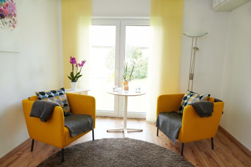 Gediegene Athmosphäre im neuen Praxisraum. Geeignet für Einzel- Paar- und Gruppentherapie.