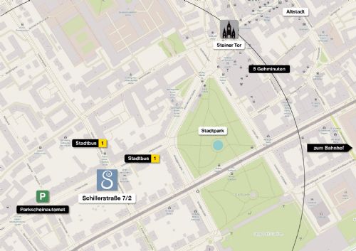 LageplanMeine Praxis in Krems an der Donau ist zentral gelegen, und sowohl mit öffentlichen Verkehrsmitteln, als auch dem Auto sehr gut zu erreichen. (Plandaten: OpenStreetMap)