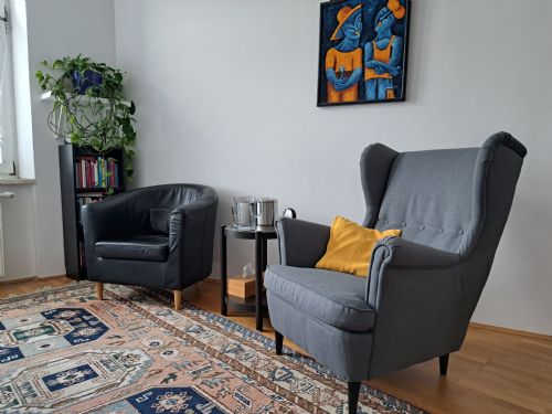 Der Beratungsraum bietet ausreichend Platz um neben Einzelberatungen, auch Paar-, Familien- und Gruppensitzungen abzuhalten. Dieser ist im orientalischen Stil gehalten und strahlt Gemütlichkeit und Geborgenheit aus.