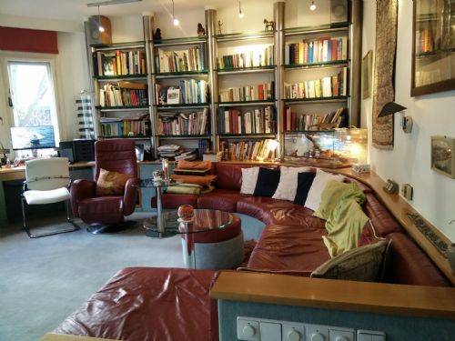 Praxisraum 1 ist mit Besprechungstisch, Liegecouch bzw. Sitzecke eingerichtet. Er eignet sich für Einzeltherapie, Paartherapie, Coaching, Training, Supervision und Kleingruppen bis zu 4-5 Personen.
