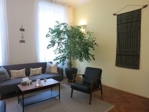 Ruhiger, geschützter Seminarraum für Familien- und Gruppentherapie, Selbsterfahrungs-WE, Aufstellungsarbeit und Gesundheitsförderung. Großzügiger Pausenraum mit Teeküche und Sanitärraum. 200m zum Augarten. 250m zur U2 Taborstraße. Garage in der Nähe.