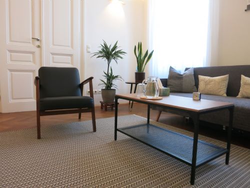 Ruhiger und geschützter Raum für Psycholog. Beratung, Coaching, Supervision, Einzel-, Paar-, Familientherapie und Aufstellungsarbeit. Großzügiger Warteraum mit Teeküche und Sanitärbereich. 250m zur U2 Taborstraße, Kurzparkzone, Garage in der Nähe.